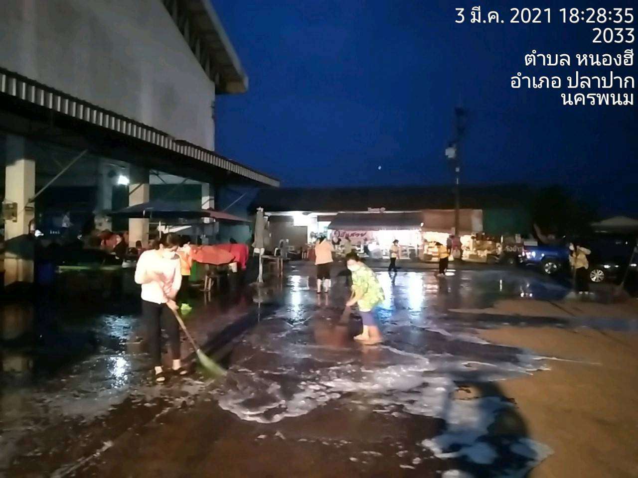 กิจกรรม "โครงการจิตอาสา ทำความดีด้วยหัวใจ" โดยการล้างทำความสะอาดพื้นที่ตลาดสดชุมชนตำบลหนองฮี S:1