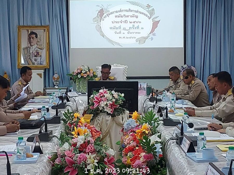 บรรยากาศประชุมสภาองค์การบริหารส่วนตำบลหนองฮี สมัยวิสามัญ ประจำปี 2566 สมัยที่ 3 ครั้งที่ 1 ประจำวันที่ 1 ธันวาคม 2566