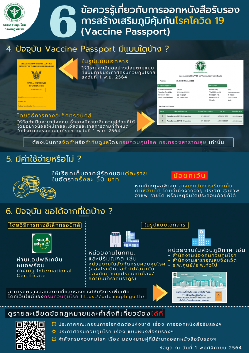 ประชาสัมพันธ์ 6 ข้อควรรู้เกี่ยวกับการออกหนังสือรับรองการสร้างเสริมภูมิคุ้มกันโรคโควิด-19 (Vaccine Passport)