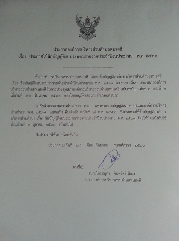ประกาศองค์การบริหารส่วนตำบลหนองฮี