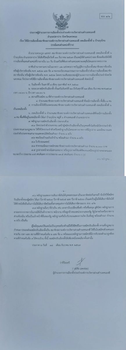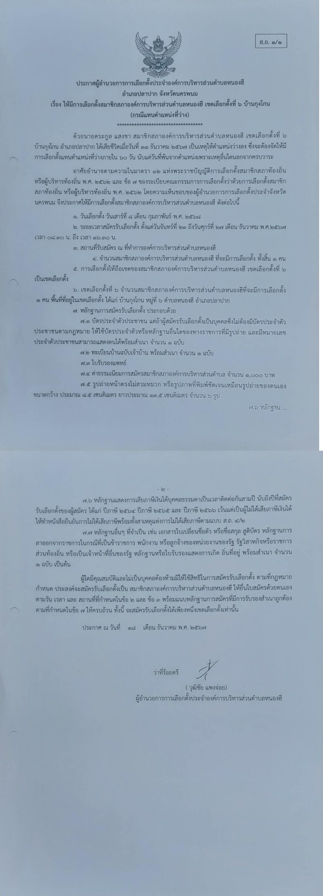 ประกาศผู้อำนวยการการเลือกตั้งประจำองค์การบริหารส่วนตำบลหนองฮี อำเภอปลาปาก จังหวัดนครพนม เรื่อง ให้มีการเลือกตั้งสมาชิกสภาองค์การบริหารส่วนตำบลหนองฮี เขตเลือกตั้งที่ 6 บ้านกุงโกน (กรณีแทนตำแหน่งที่ว่าง
