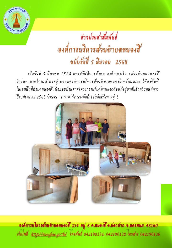 มอบบ้านคนพิการในเขตพื้นที่ตำบลหนองฮี