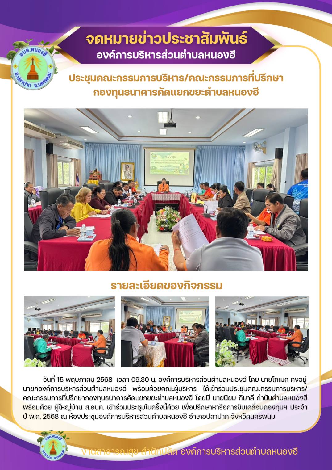 ประชุมคณะกรรมการบริหาร/คณะกรรมการที่ปรึกษากองทุนธนาคารคัดแยกขยะตำบลหนองฮี