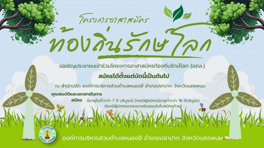 ขอเชิญประชาชนเข้าร่วมโครงการ อาสาสมัครท้องถิ่นรักษ์โลก (อถล.)