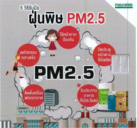 โดยเฉพาะหากสูดดมฝุ่นนี้ติดต่อกันเป็นระยะเวลานาน ผลกระทบจากฝุ่น PM 2.5 โดยปกติ ฝุ่น PM 2.5 มักเกิดขึ้นจากการเผาไหม้ของควันท่อไอเสียรถยนต์หรือยานพาหนะอื่น ๆ การปล่อยมลพิษในโรงงานอุตสาหกรรม การผลิตไฟฟ้า การเผาขยะในพื้นที่โล่งหรือเตาเผาขยะ โดยไฟป่าและพายุฝุ่นจะทำให้ฝุ่นนี้มีปริมาณเพิ่มมากขึ้นด้วย ซึ่งการสูดดมฝุ่นชนิดนี้จะส่งผลเสียต่อกระบวนการต่าง ๆ ในร่างกาย เช่น เพิ่มอนุมูลอิสระภายในร่างกาย ทำให้เกิดการอักเสบและสร้างความเสียหายต่อเซลล์ ส่งผลต่อระบบการไหลเวียนของเลือด ทำให้แลกเปลี่ยนออกซิเจนได้ไม่ดี ทำให้ระดับแคลเซียมภายในเซลล์เกิดความไม่สมดุล เป็นตัวการกระตุ้นมะเร็งโดยเฉพาะมะเร็งปอด โดยในระยะสั้นอาจทำให้เกิดปัญหาสุขภาพ เช่น ระคายเคืองดวงตา จมูก ลำคอและหน้าอก มีปัญหาทางระบบทางเดินหายใจอย่างการไอ หายใจลำบากหรือปอดถูกทำลาย เป็นต้น นอกจากนี้ ผู้ป่วยที่เป็นโรคหอบหืดและโรคปอดอาจมีอาการแย่ลง บางรายที่เป็นโรคหัวใจอาจเกิดภาวะหัวใจขาดเลือดหรือภาวะหัวใจเต้นผิดปกติ รวมถึงเพิ่มความเสี่ยงในรักษาตัวในโรงพยาบาลจากโรคระบบทางเดินหายใจและโรคหัวใจและหลอดเลือดมากขึ้น ยิ่งไปกว่านั้น ฝุ่น PM 2.5 ยังอาจส่งผลกระทบต่อทารกในครรภ์ ทำให้เด็กมีน้ำหนักตัวน้อยและเจริญเติบโตได้ช้า ดังนั้น สตรีมีครรภ์ รวมถึงเด็กและผู้สูงอายุซึ่งเป็นวัยที่มีภูมิต้านทานต่ำอาจเสี่ยงได้รับอันตรายจากฝุ่นชนิดนี้มากกว่าคนสุขภาพดีทั่วไป จึงควรเพิ่มความระมัดระวังและตระหนักถึงอันตรายของฝุ่น PM 2.5 มากเป็นพิเศษ สำหรับผลในระยะยาว ฝุ่น PM 2.5 อาจไปขัดขวางการทำงานของปอด เพิ่มความเสี่ยงของโรคระบบทางเดินหายใจ โรคหัวใจและหลอดเลือด รวมทั้งทำให้โรคลุกลามมากขึ้นหรือมีอายุขัยลดลง โดยเฉพาะกลุ่มผู้ป่วยที่มีโรคประจำตัวอย่างโรคระบบทางเดินหายใจหรือโรคหัวใจ วิธีดูแลตัวเองจากฝุ่น PM 2.5 หลายคนอาจไม่ทราบว่าฝุ่น PM 2.5 ไม่เคยหายไปไหนไกล เพียงแต่มีปริมาณลดลงจนเราเผลอนิ่งนอนใจ และไม่ดูแลสุขภาพอย่างต่อเนื่อง ดังนั้น เพื่อสุขภาพที่ดีและห่างไกลจากฝุ่นตัวร้ายอยู่เสมอ ทุกคนควรดูแลสุขภาพให้แข็งแรง รับประทานอาหารที่มีสารต้านอนุมูลอิสระ ออกกำลังกายด้วยการเดินแทนการออกแรงมาก ๆ หากอยู่ในพื้นที่ที่มีค่าฝุ่น PM2.5 เกินมาตรฐานอาจต้องลดทำกิจกรรมกลางแจ้ง พยายามอยู่ภายในอาคาร ปิดประตูและหน้าต่างให้สนิท อย่างไรก็ตาม ผู้ที่ต้องออกไปเผชิญฝุ่นและมลพิษแทบทุกวันอย่างหลีกเลี่ยงไม่ได้ก็ยังสามารถดูแลตนเองจากฝุ่น PM 2.5 ด้วยการพกพาอุปกรณ์ป้องกันติดตัวไว้ตลอด 
